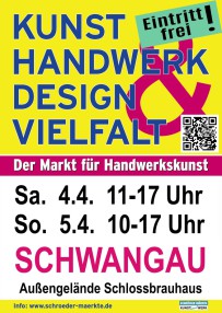 Wenn Vielfalt auf KUNST, HANDWERK, DESIGN und VIELFALT trifft, dann wird es bunt. Unter diesem Motto verwandeln am Ostersamstag, 4. April (11-17 Uhr) und Ostersonntag, 5. April (10-17 Uhr) ausgewählte Kunst-handwerker, Designer und Künstler den Außenbereich des Schlossbrauhauses in einen Marktplatz mit einem äußerst vielfältigen Angebot an handgefertigten Produkten. Schlendern Sie über den Markt und lassen Sie sich von den Neuheiten und zahlreichen Ideen für Haus und Garten inspirieren. Hier finden Interessierte alles, um neue und farbige Akzente in Haus und Garten zu setzen. Wer auf der Suche nach Deko- und Geschenkideen ist, der wird bei diesem Markt ganz sicherlich fündig. Erleben Sie Vielfalt und einzigartiges Design aus den Bereichen Mode, Glas, Filz, Schmuck, Papier, Floristik, Keramik oder auch Holz - bei diesem Markt ist für jeden Freund von Qualitätsarbeit etwas Passendes dabei. Wer Lust und Zeit hat, kann sich auch eine Echtledergeldbörse mit historischer Namensprägung vor Ort bedrucken lassen.
