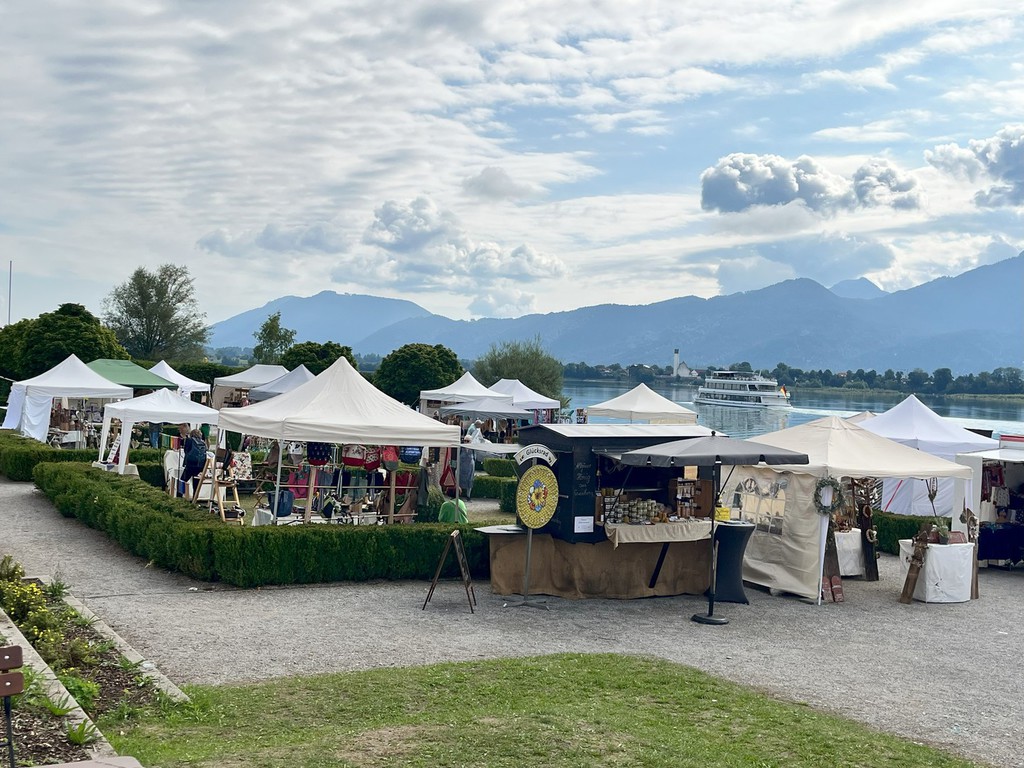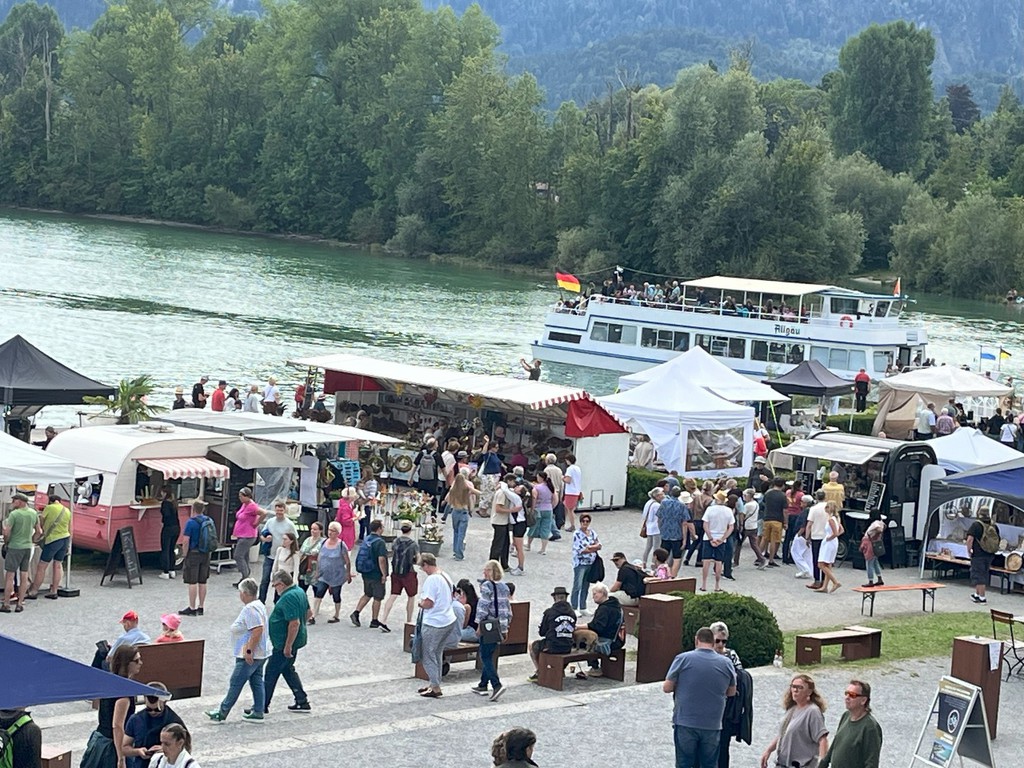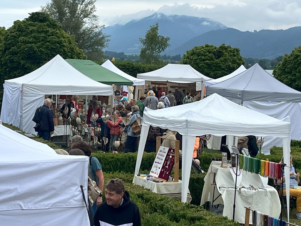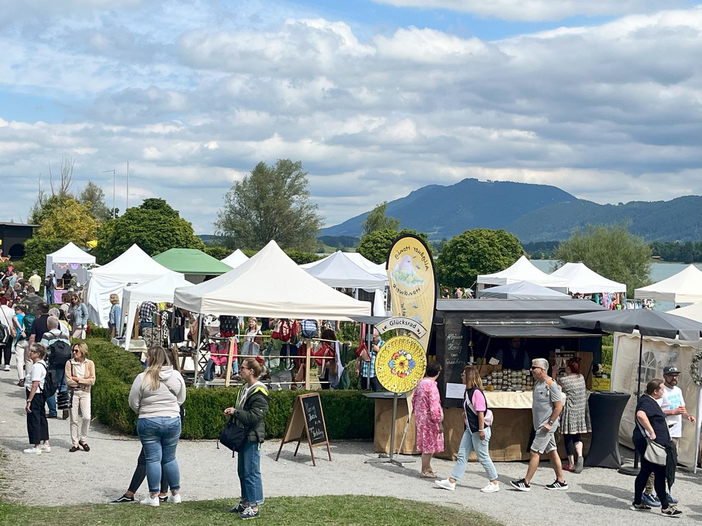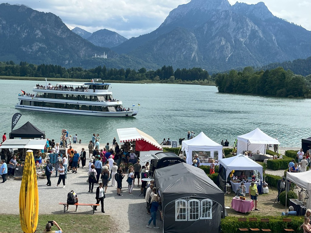 Hier sehen Sie einige Bilder vom letzten Kunsthandwerkermarkt mit über 80 Ausstellern anlässlich des Geburtstages von König Ludwig II im Barockgarten des Festspielhaus Neuschwanstein in Füssen, direkt am Forggensee.