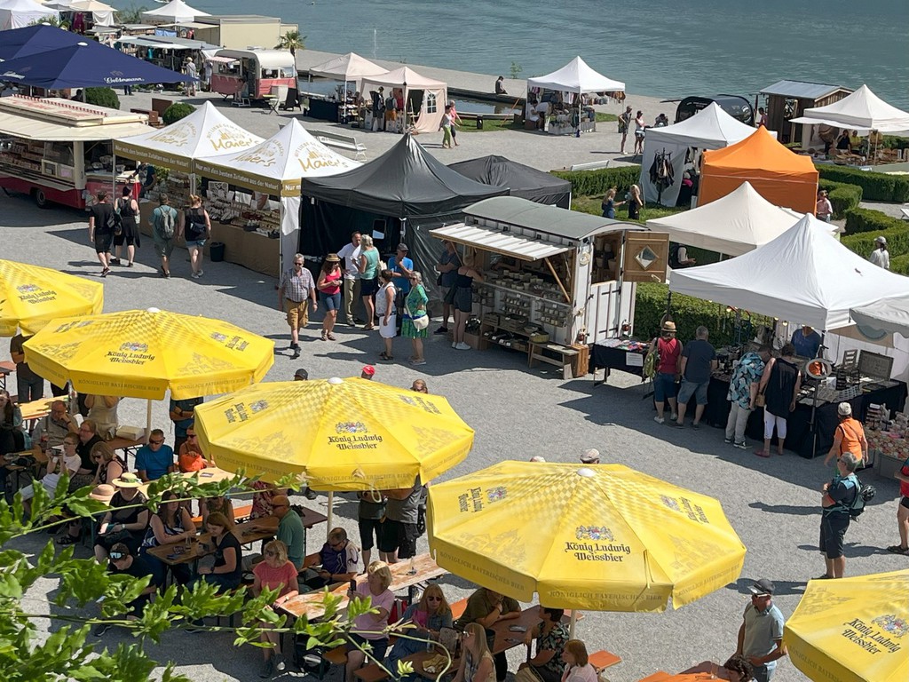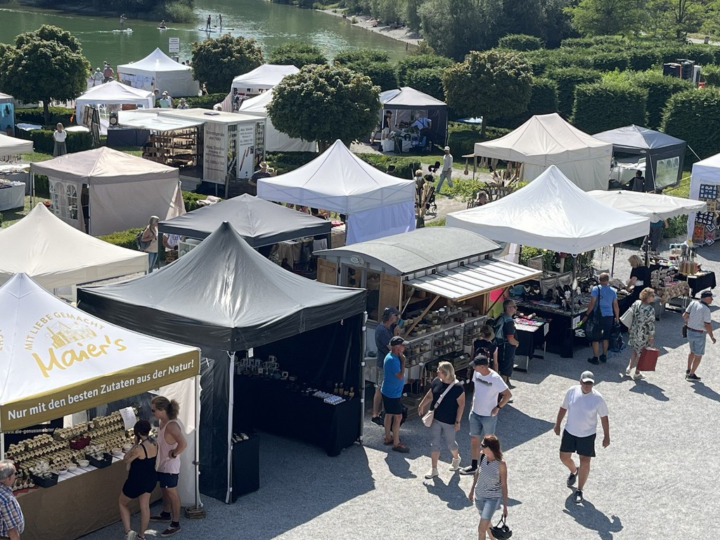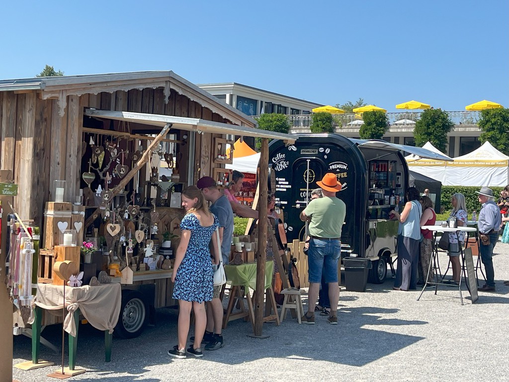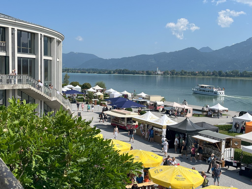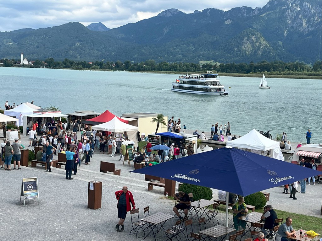 Hier sehen Sie einige Bilder vom letzten Kunsthandwerkermarkt mit über 80 Ausstellern anlässlich des Geburtstages von König Ludwig II im Barockgarten des Festspielhaus Neuschwanstein in Füssen, direkt am Forggensee.